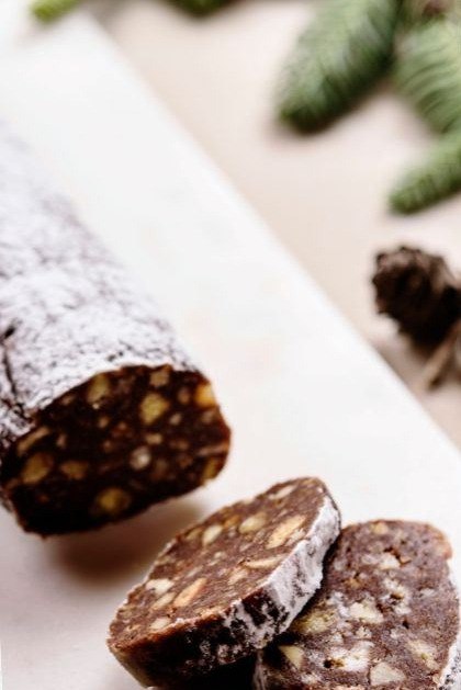- Laotage saadud segu kilele, vormige vorstiks ja suruge tihedalt kokku. Hoidke 2 tundi külmkapis.